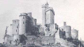- enceinte trapézoïdale flanquée de tours rondes aux angles et au milieu des façades: